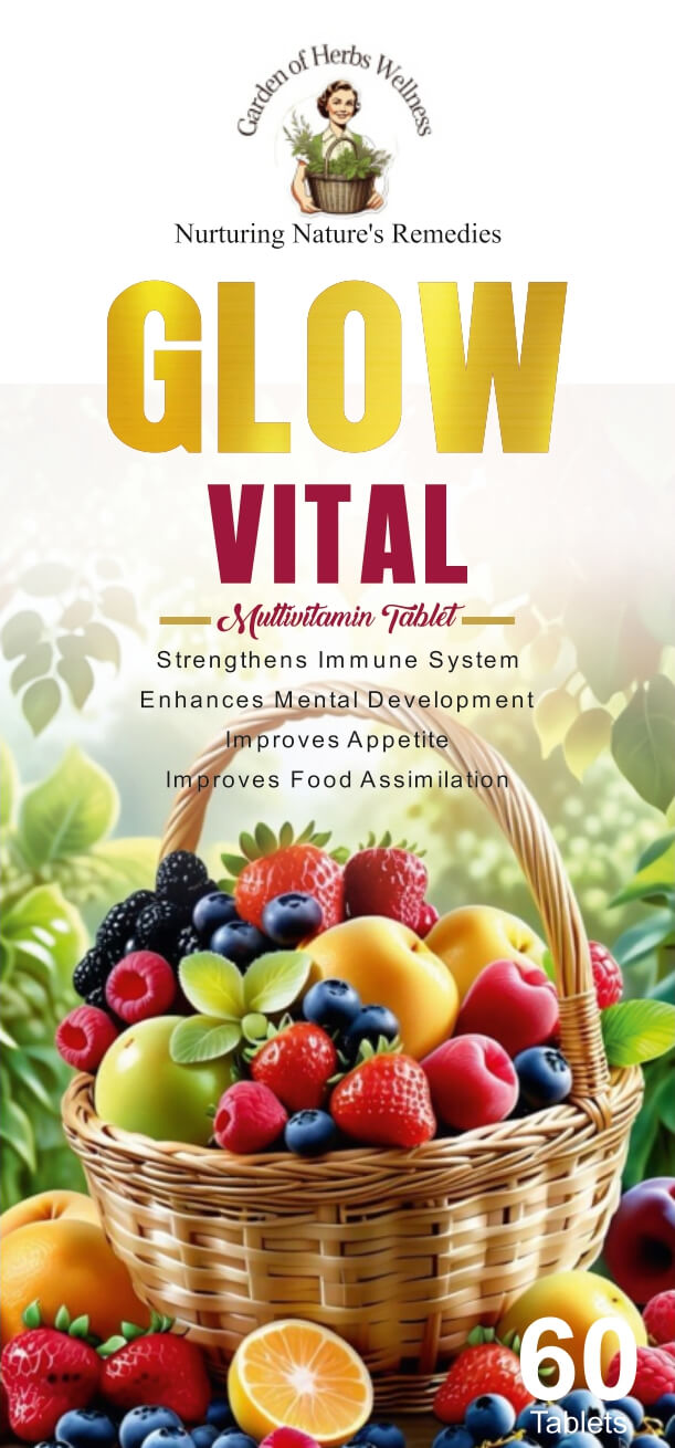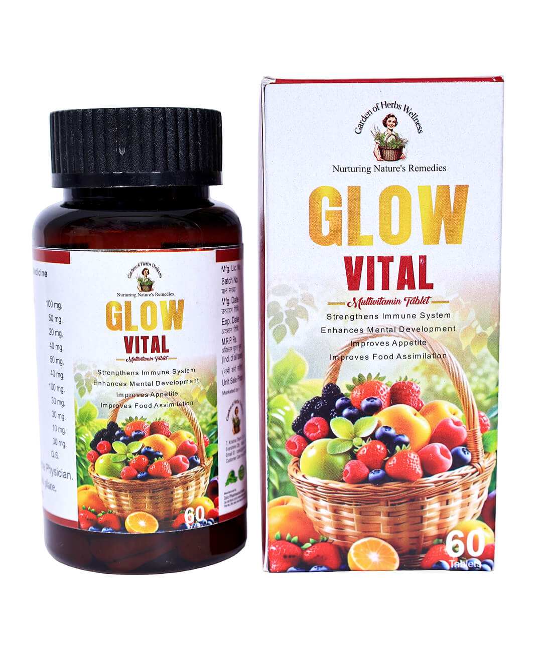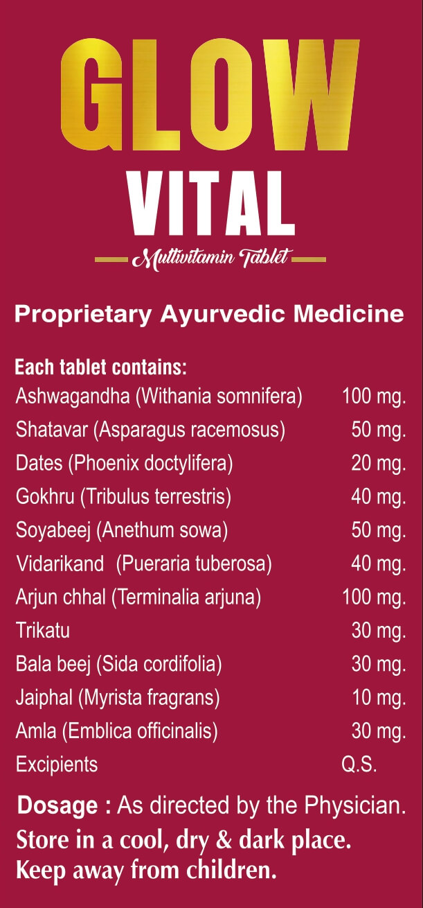 Glow Vital Multivitamin Tablet is a thoughtfully crafted Ayurvedic supplement designed to support overall wellness and daily vitality.